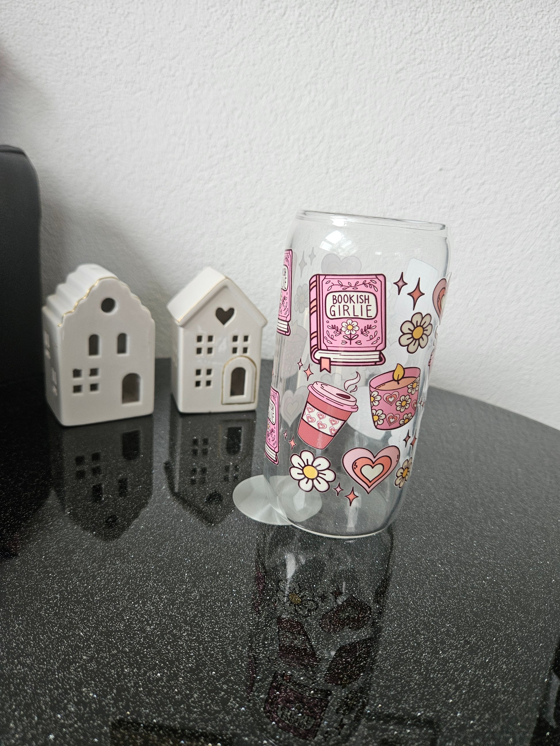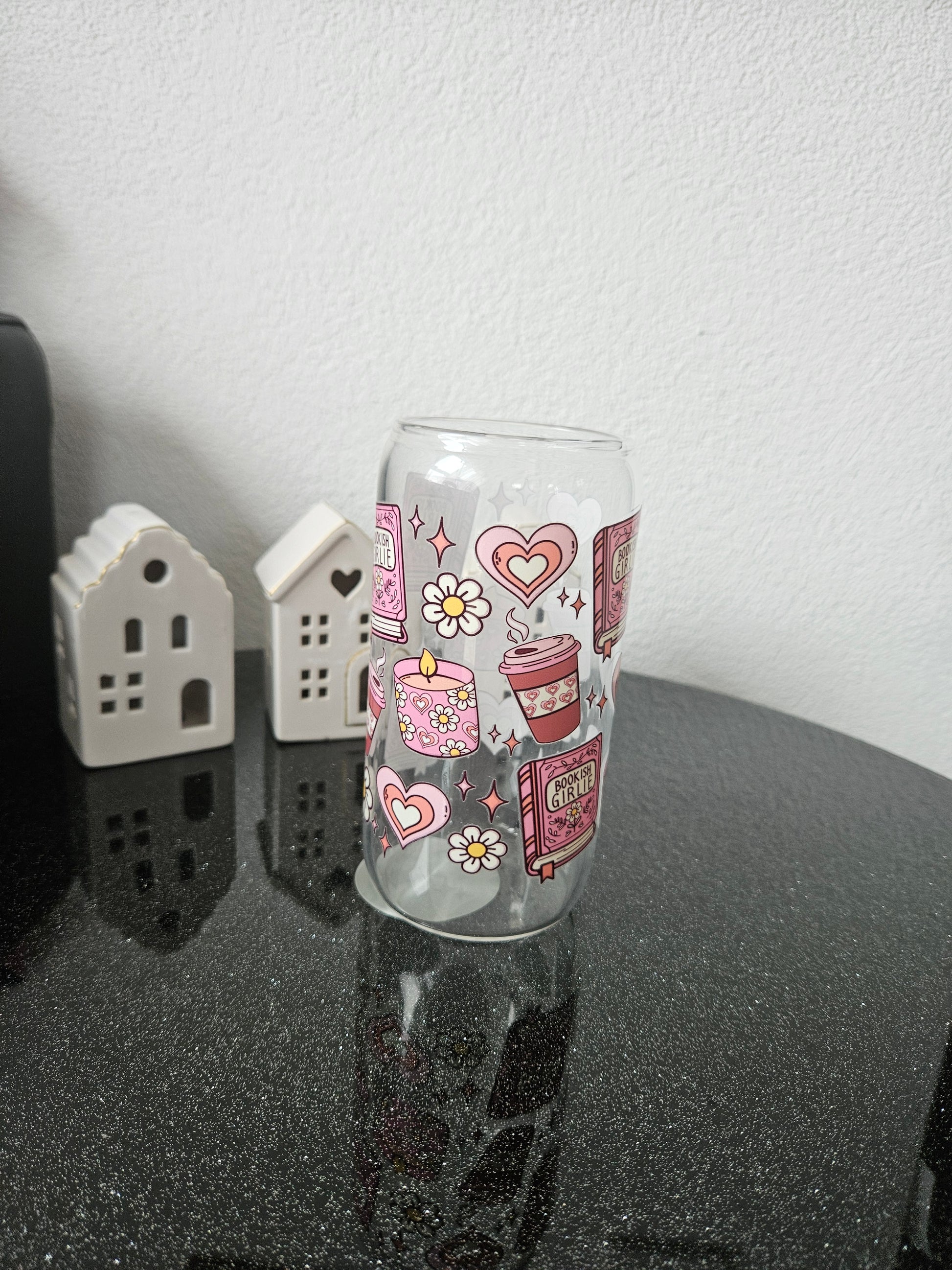 Material: Glas - Bambusdeckel- Glasstrohalm - UVDTF Transferfolie