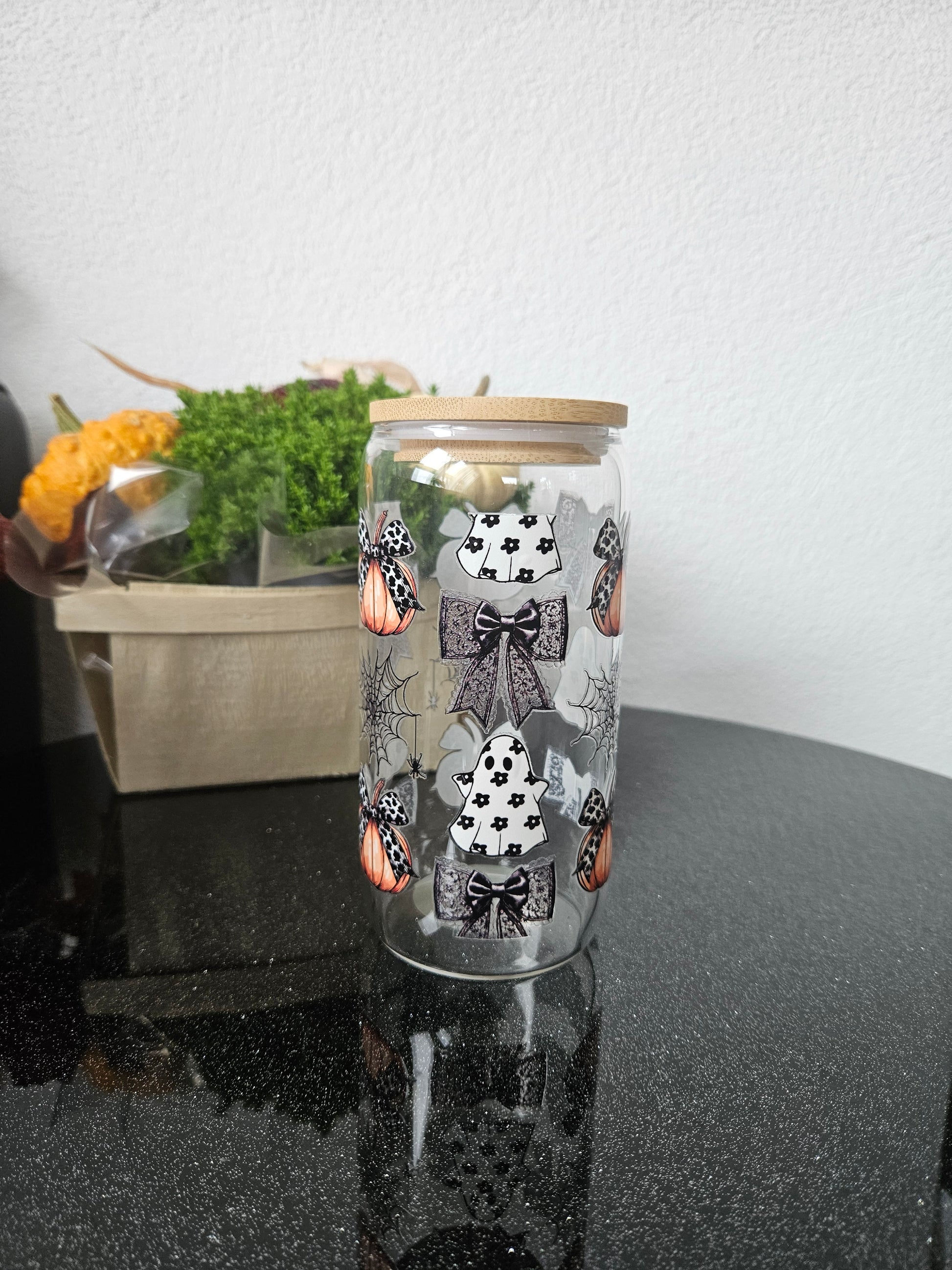 Material: Glas - Bambusdeckel- Glasstrohalm - UVDTF Transferfolie
